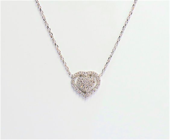 Collana girocollo cm 42 in oro bianco 750/000 gr 2.6 con cuore ricoperto di zirconi . Certicicato d'autenticità Ambrosia