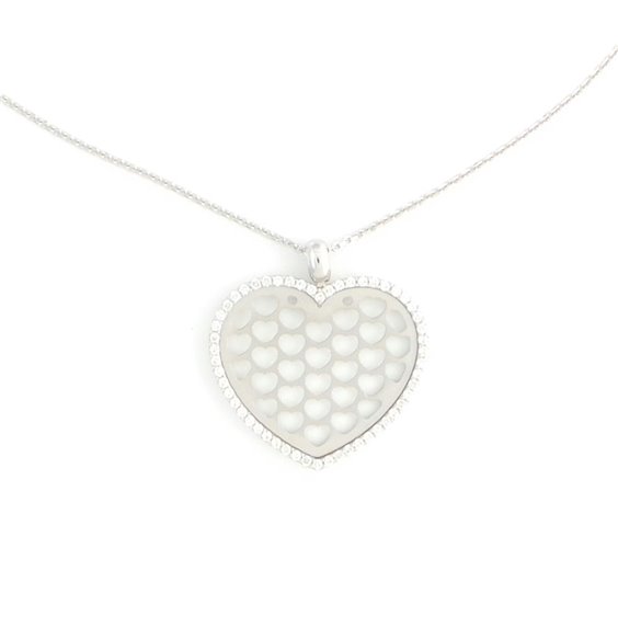 Collana girocollo Stocco Gioielli cm 42 con pendente a forma di cuore traforato-satinato contornato da zirconi . Oro bianco 750/1000 tot. gr 6,4 .
