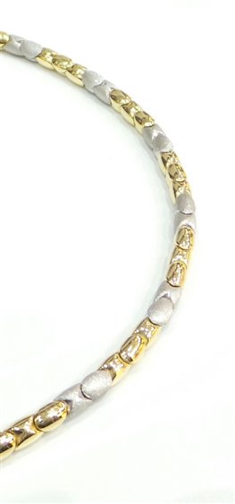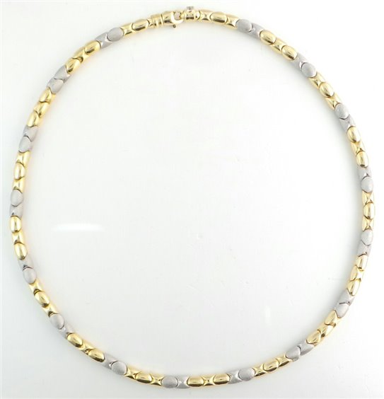 Collier donna bicolor 750/1000 satinato-lucido gr 28,2 lunghezza cm 43 con moschettone . Certificato d'autenticita' Oreficeria Stocco .