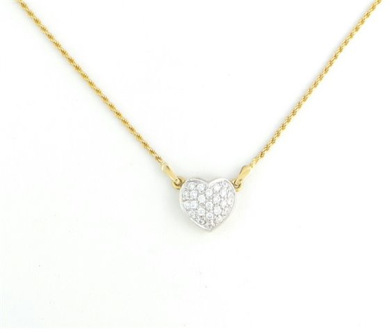 Collana torchon Stocco Gioielli in oro giallo con cuore bianco ricoperto di zirconi . Carati montatura 18 , peso gr 8,2 chiusura con moschettone , lunghezza totale cm 41,5 ,dimensione cuore mm 13x13 .