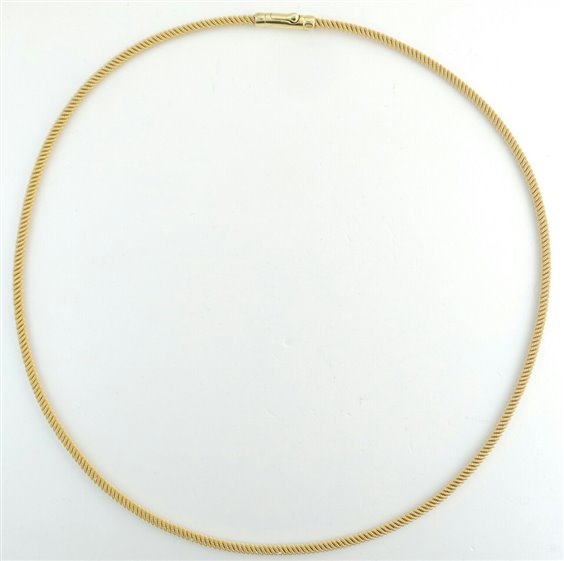 Collier donna attorcigliato in oro giallo 750/1000 gr 15,3 , lunghezza cm 45 . Certificato d'autenticita' Oreficeria Stocco .