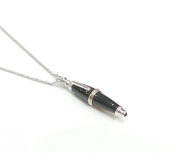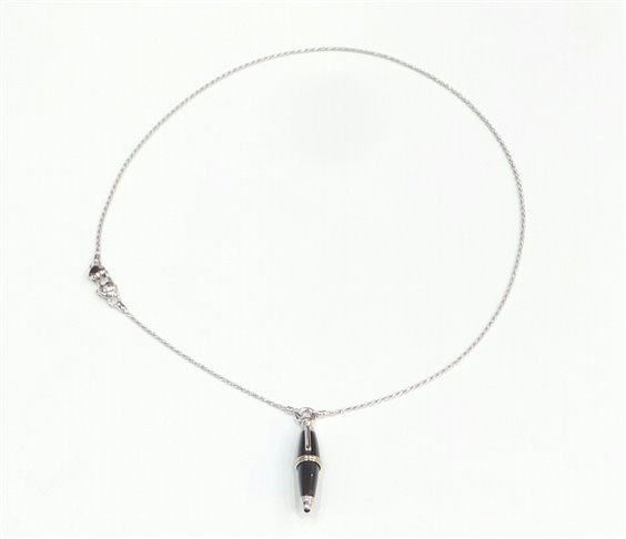Collana torchon Stocco Gioielli in oro bianco 18 k ,gr 10.75 ,cm 45 con pennino in onice e moschettone a forma di cuore .
