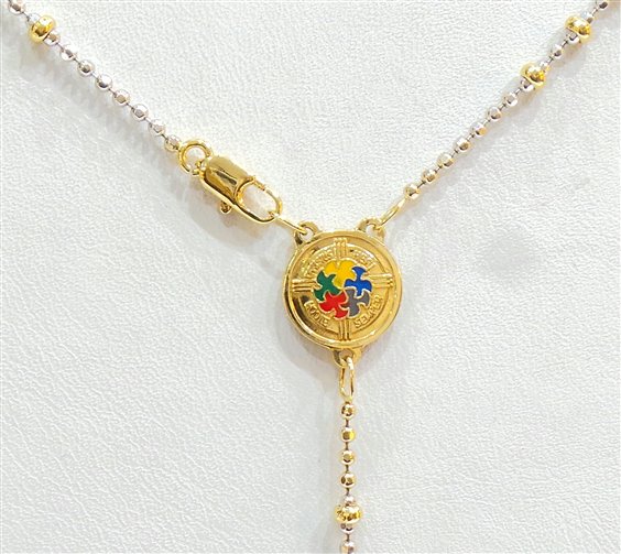 Collana-rosario in oro giallo e bianco 18 kt gr 10.6