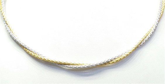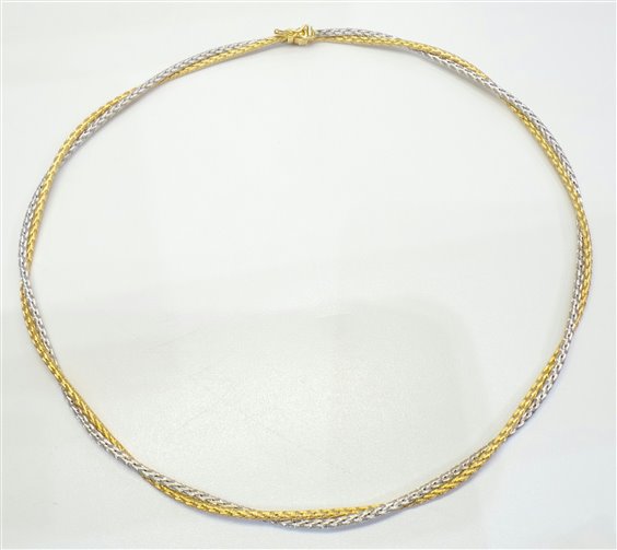 Girocollo doppio filo oro bianco e oro giallo 18 Kt. chiusura a cassetta con doppia sicura lunghezza cm. 41.5 peso gr. 13,50
