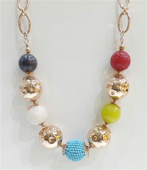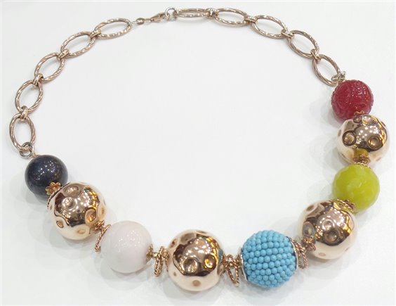 Collana donna Laura Bellini arg. 925% placcato oro rosa con pietre dure pasta turchese caleite rosa giada coreana lapislazzulo diametro 20/24mm. lunghezza cm. 50