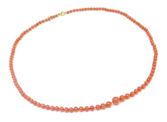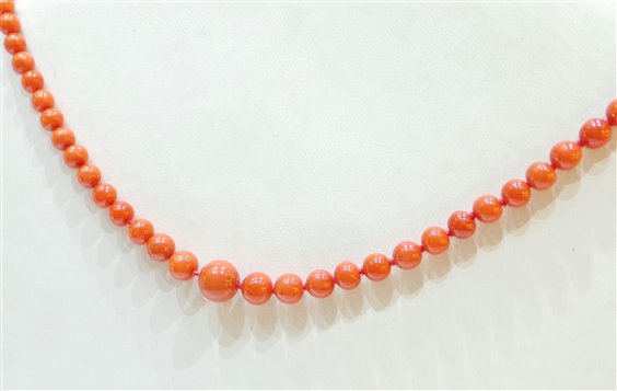 Collana in corallo rosso mediterraneo gr 23.7 gradazione da mm 4.5 a 9.4