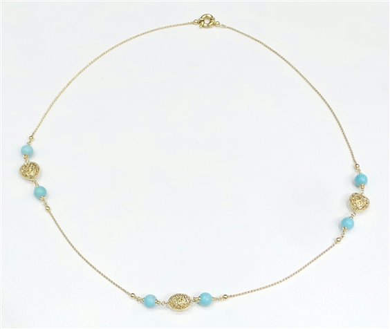 Collana Stocco Gioielli in oro giallo 18 k con sfere di turchese ,gr 29.7 .