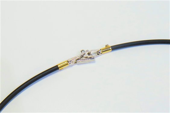 Collana uomo Arkano in caucciù con chiusura oro bianco e giallo 18 Kt. e diamantino nero su apertura lunga cm. 50 diametro mm. 2,5