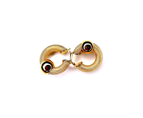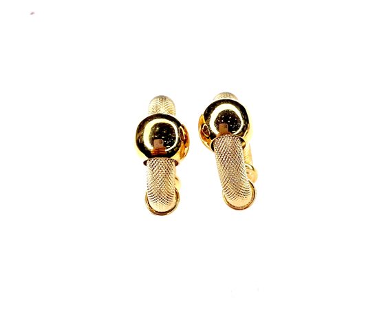 Veroni in oro giallo 18 kt gr 10,70 diametro totale cm 2,5 con tubo sezione tonda mm 6 zigrinato e sfera mobile lucida. Marca Unoaerre.