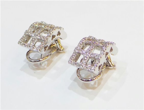 Orecchini in oro bianco 18 kt gr 10,90 con diamanti naturali taglio brillante caratura 0,65 e chiusura con perno e clips . Prodotto rifinito a mano . Marca Ponte Vecchio Gioielli.
