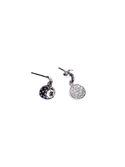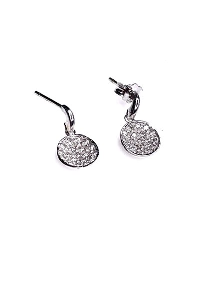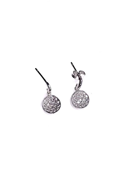 Orecchini pendenti Stocco Gioielli in oro bianco 18 kt, gr 2,5 lunghezza totale cm 1,5 con cerchio convesso ricoperto di zirconi.