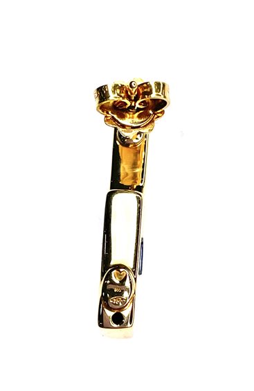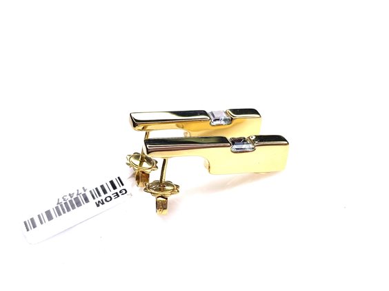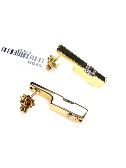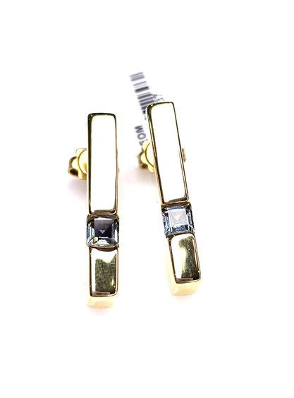 Orecchini Stocco gioielli in oro giallo 18 K con lavorazione canna filo quadro con topazio azzurro taglio carrè incastonato attacco a paletto peso gr 4,1 lunghezza cm. 2,6 .