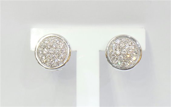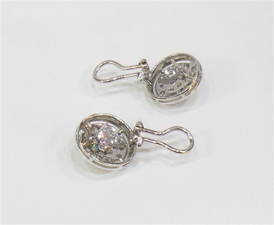 Orecchini oro bianco 18 Kt. con 38 diamanti taglio brillante per KT: 1,76 colore H purezza VVS attacco perno a clips