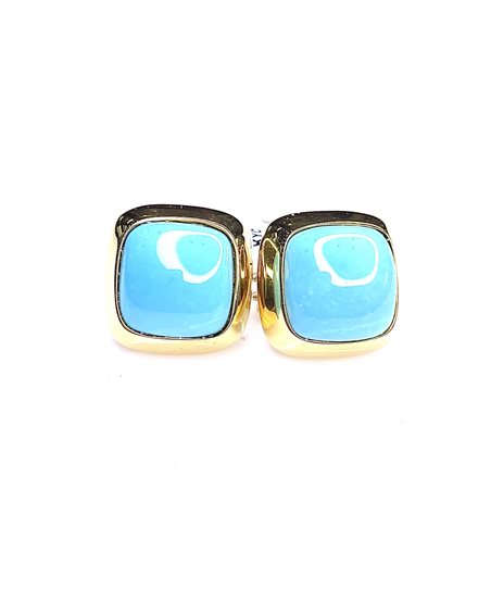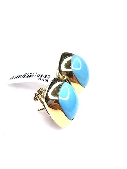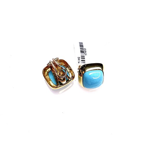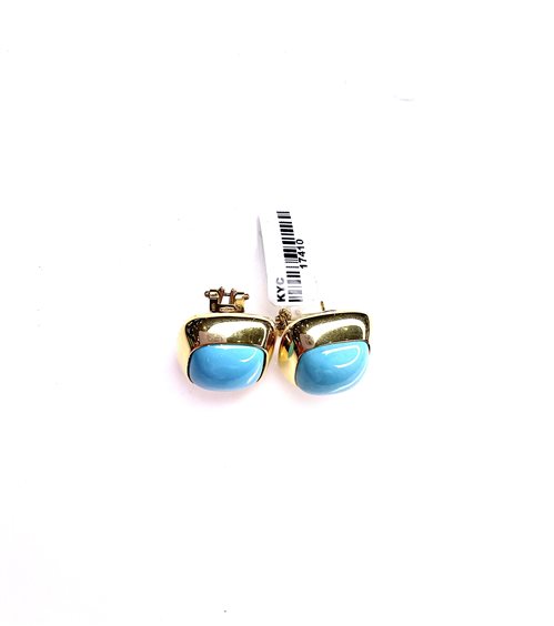 Orecchini Stocco Gioielli in oro giallo 18 K con turchese ,peso gr. 16 dimensioni cm. 1,8 x 1,8 attacco perno-clip .