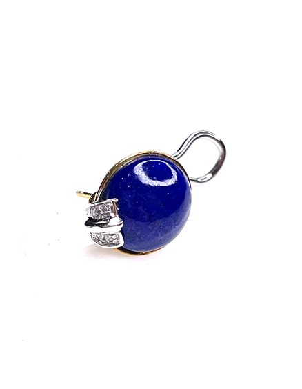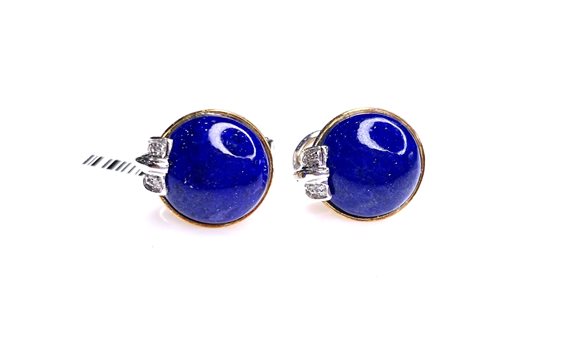 Orecchini Stocco Gioielli in oro giallo e bianco 18 K con lapislazzuli e 4 diamanti naturali taglio brillante attacco perno-clips dimensioni mm.16x15 peso gr. 11,5 .