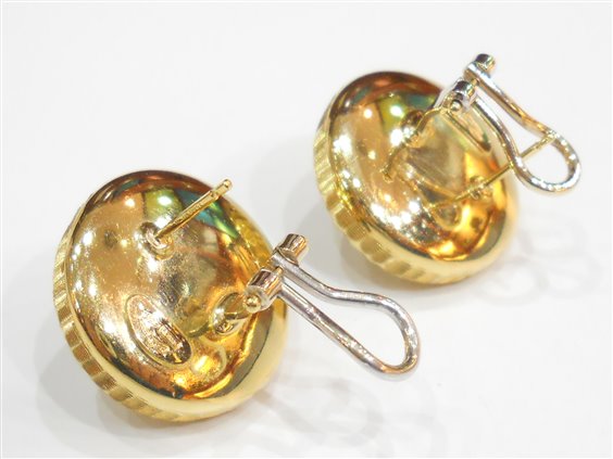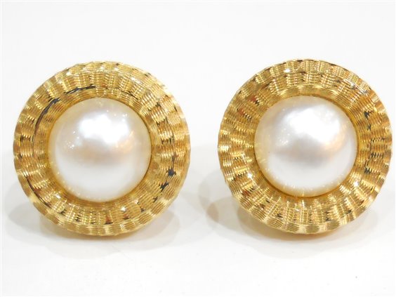 Orecchini Stocco Gioielli in oro giallo e perla mabe attacco perno clips diametro cm. 2x2 peso gr. 13.4