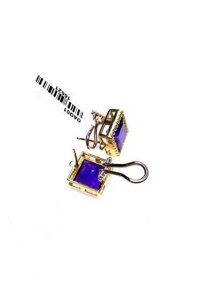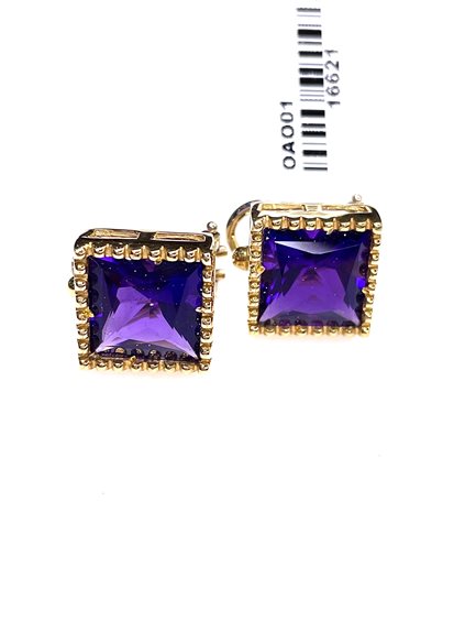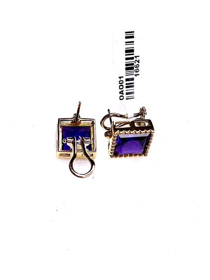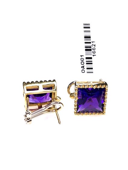 Orecchini Stocco Gioielli con montatura in oro giallo 750/1000 , perno , clips e ametista quadrata a taglio sfaccettato . Peso gr 9,80 ,cm 1,2 x 1,2 . Certificato d'autenticità Oreficeria Stocco .