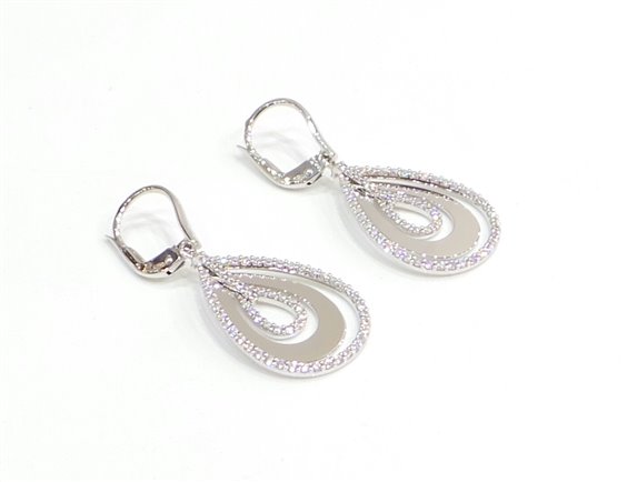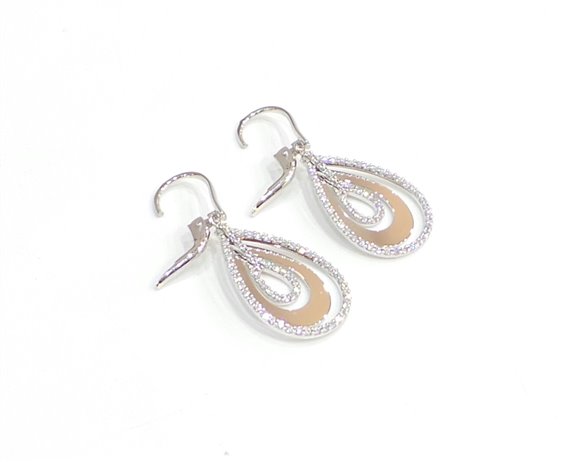 Orecchini pendenti donna in oro bianco 750/1000 con zirconi , monachella e clips , gr 5,15 totale lunghezza cm 3,6 . Certificato d'autenticita' Oreficeria Stocco .