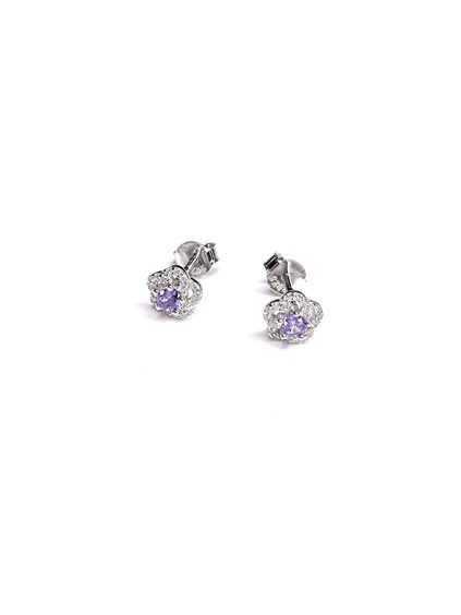 Orecchini da lobo in argento 925/000 con zircone centrale viola .