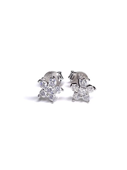 Orecchini da lobo a forma di fiore in argento 925/000 con zirconi .