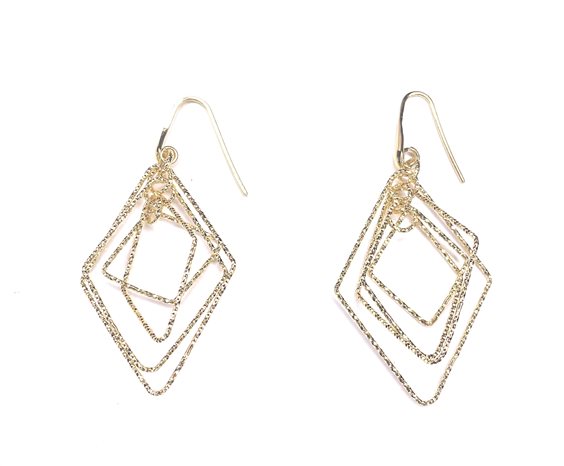 orecchini pendenti in argento 925 placcato oro giallo con rombi diamantati a laser.