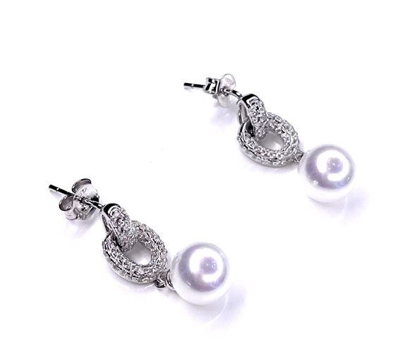 Orecchino pendente in argento 925/000 con perla d'acqua dolce e zirconi .