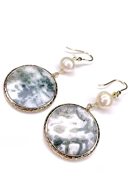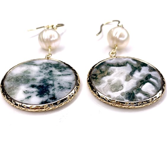 Orecchini pendenti in argento dorato con giada e perla naturale d'acqua dolce .