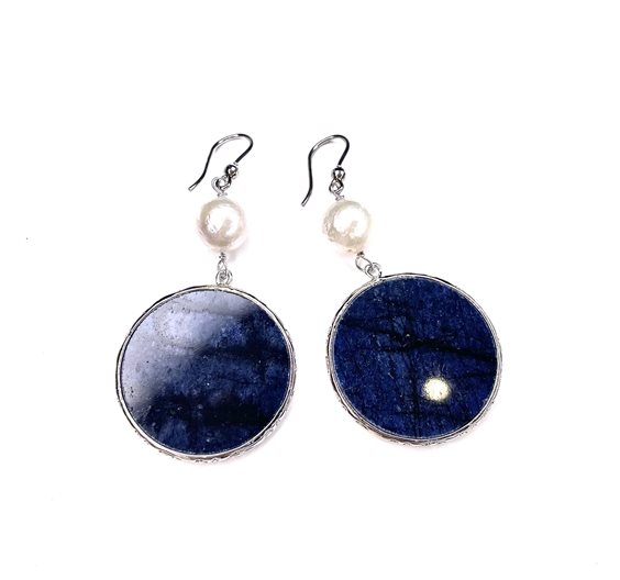Orecchini pendenti in argento 925/000 con pietra dura naturale e perla d'acqua dolce.
