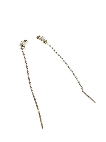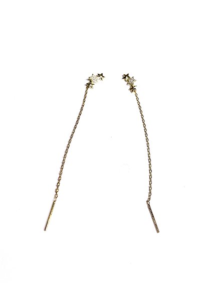Orecchini pendenti in argento dorato 925/000 con zirconi ,cm 7.5 .