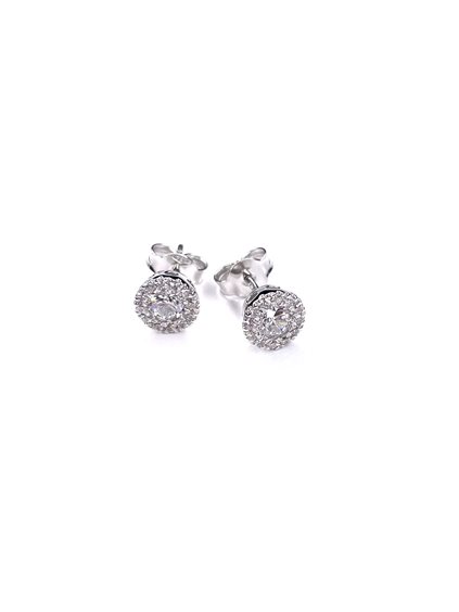 Orecchini donna in oro bianco 750/000 con zircone centrale contornato da laterali ,gr 2.11