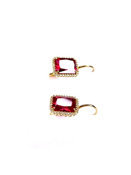 Orecchini a monachella Stocco Gioielli in oro giallo 18 k ,cm 2.2 ,gr 4.59 con zircone rosso centrale e bianchi laterali .