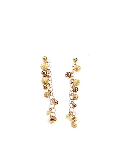 Orecchini pendenti Stocco Gioielli in oro giallo 18 k ,gr 6.39 ,CM 5.5 con sfere lisce e diamantate .