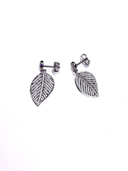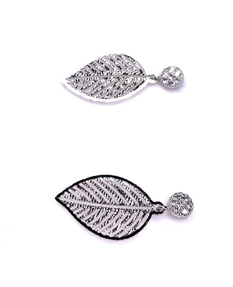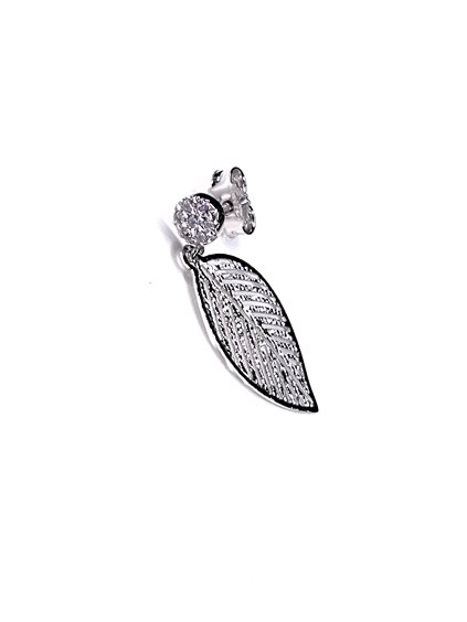 orecchini in oro bianco 18 kt pendenti soggetto foglia con punto luce composto da zirconi.