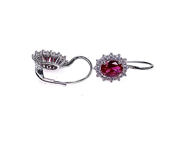 Orecchini a monachella Stocco Gioielli con montatura in oro bianco 18 k ,zircone centrale rosso e laterali bianchi ,gr 4.7 ,lunghezza cm 2.1 .