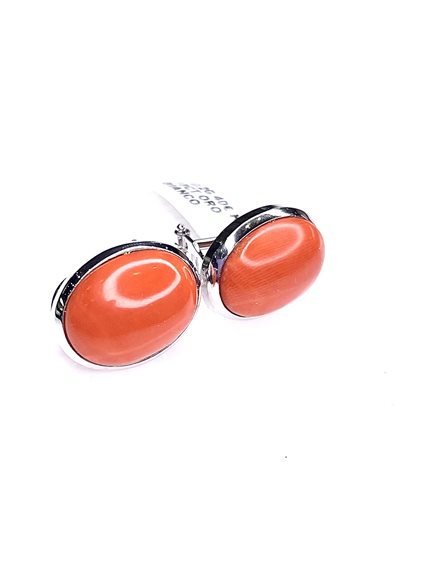 Orecchini Stocco Gioielli in oro bianco 18 K con corallo mediterraneo color salmone ,attacco perno clip peso gr. 10,2 dimensione cm. 1,7 x 1,4 .
