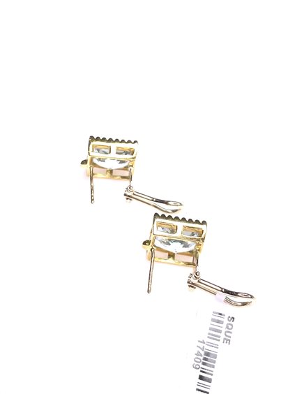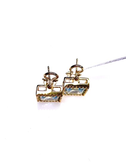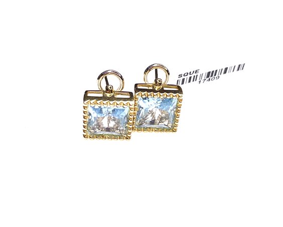 Orecchini Stocco Gioielli in oro giallo 18 k con topazio azzurro taglio quadrato mm.12x12 peso gr. 10,85 attacco perno-clip .