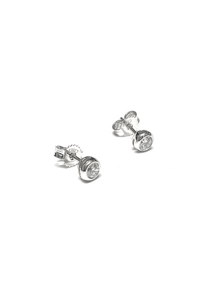 Orecchino punto luce in oro bianco 18 kt con montatura a cipollina e zircone. Chiusura a farfallina in oro bianco 18 kt
