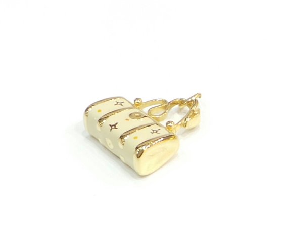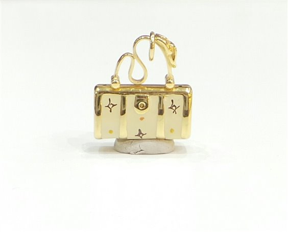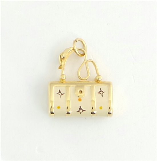 Pendente borsa donna Stocco Gioielli con montatura in oro giallo 750/1000 gr 3,5 , dimensioni cm 2,5 x 1,9 con decorazioni in smalto color crema .