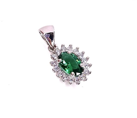 Pendente in oro bianco con cristallo verde e zirconi bianchi