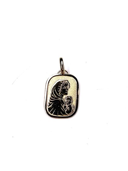 Medaglia con madonna e gesu bambino in oro giallo 750/000 gr 2.32 .