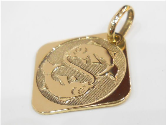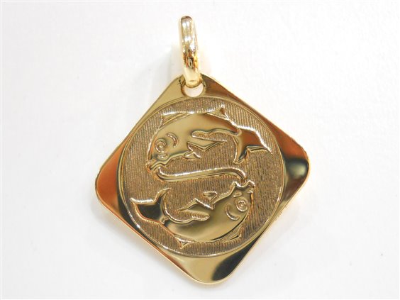 Medaglia oro giallo 18 kt. oroscopo pesci lungo cm. 2.5 peso gr. 2.45