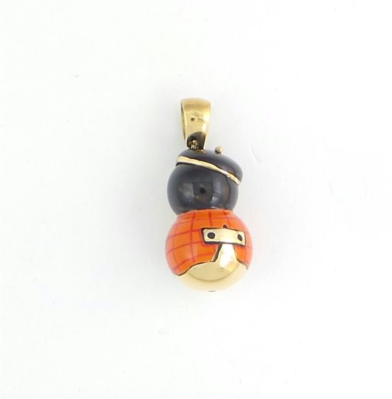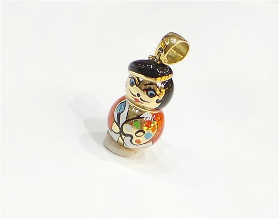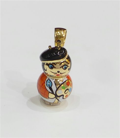 Pendente da collana Stocco Gioielli in oro giallo 18 k raffigurante un pittore con smalto a fuoco ,lung mm 30 ,gr 5.5 .
