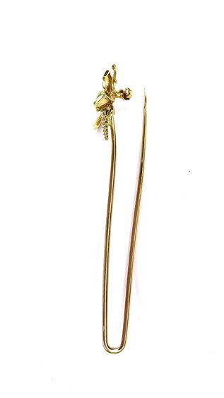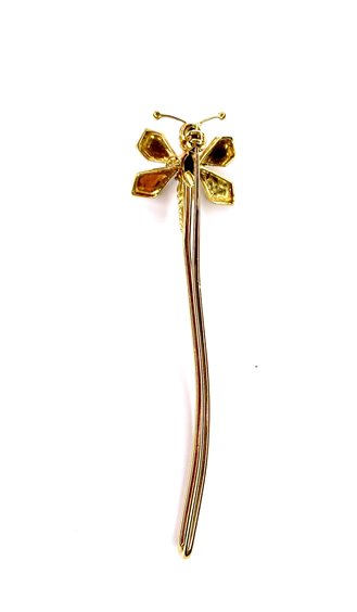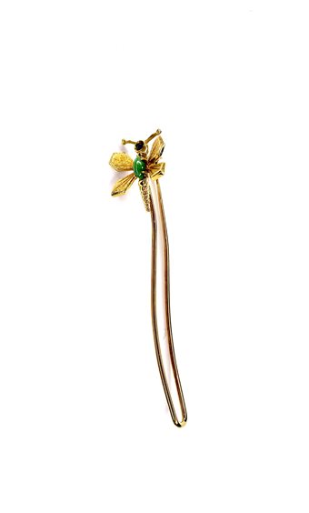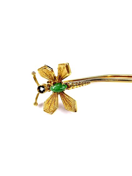Spilla Stocco Gioielli Libellula con montatura in oro giallo 750/1000 gr 6,55 , cm 7,5 con Zaffiro e pietra dura naturale verde .
