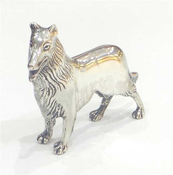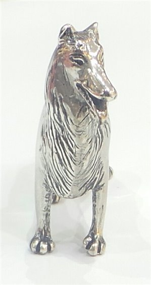 Statuina Collie in argento 925/1000 , gr 55 , dimensioni cm 7 ( lunghezza ) x h 5,5 . Certificato d'autenticita' Oreficeria Stocco .