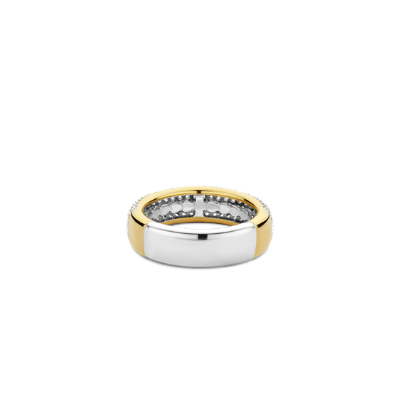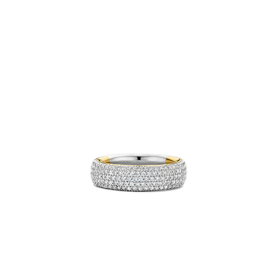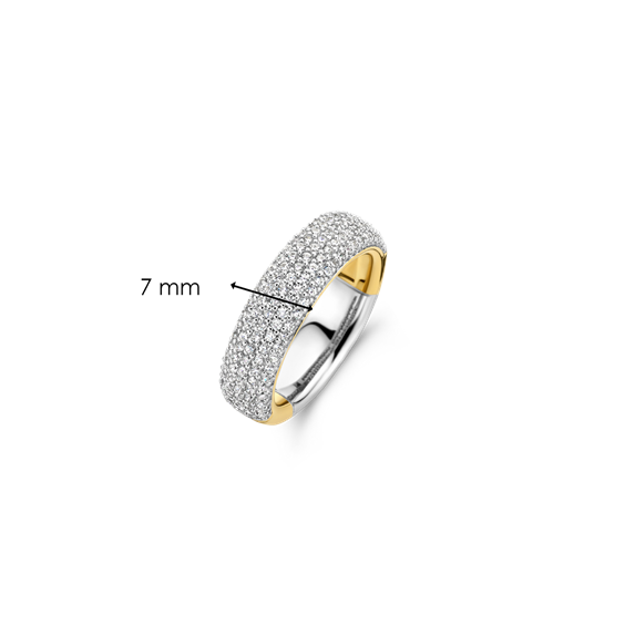 Questo anello d'argento placcato oro TI SENTO - Milano 12235ZY colpisce per la sua fascia elegante impreziosita dal pavé di zirconi bianchi. Un gioiello lussuoso, realizzato con grande cura in argento sterling 925. Indossalo da solo o abbinalo ad altre bellezze sulla stessa mano.