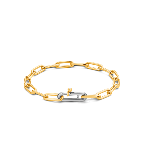 Questo bracciale d'argento TI SENTO - Milano 2936SY è caratterizzato da maglie medio-larghe placcate oro giallo 18k. La chiusura in argento crea un raffinato contrasto. Un gioiello seducente, dal raffinato gusto vintage.