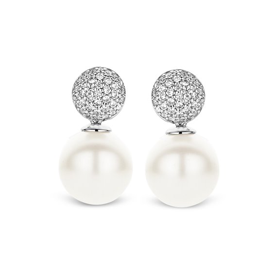 Orecchini in argento con zirconi e perle.