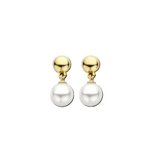 orecchini leggermente pendenti in argento placcato oro giallo 18 kt con perla