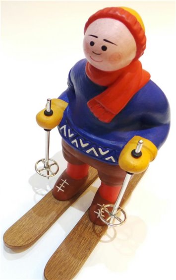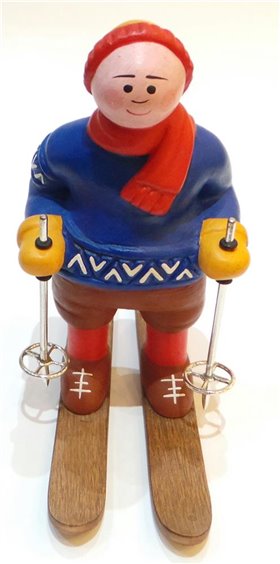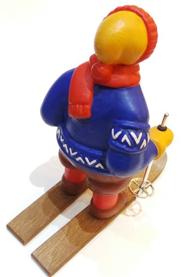 Statua prodotta artigianalmente in edizione numerata e limitata in terracotta , dipinta a mano con bacchette in argento 925 e sci in legno . Certificato di autenticita' .