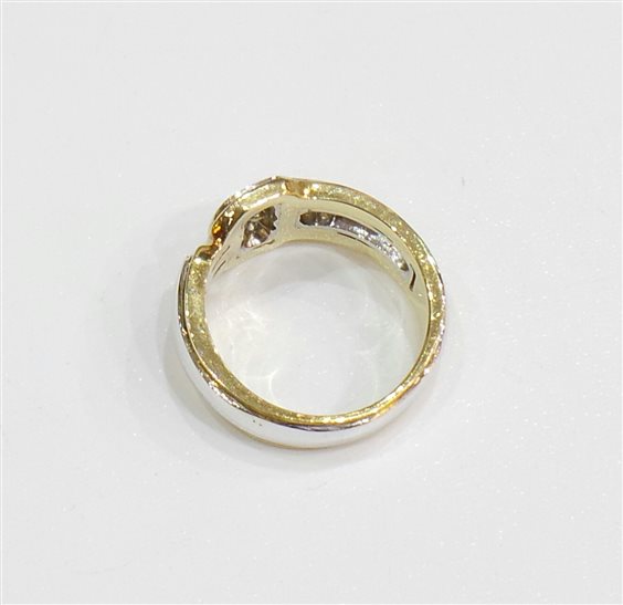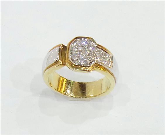 Anello oro bianco donna 18 Kt. con bordo oro giallo 11 diamanti taglio brillante per Kt. 0,60 colore G purezza VVS peso gr. 9,8 MISURA 15
